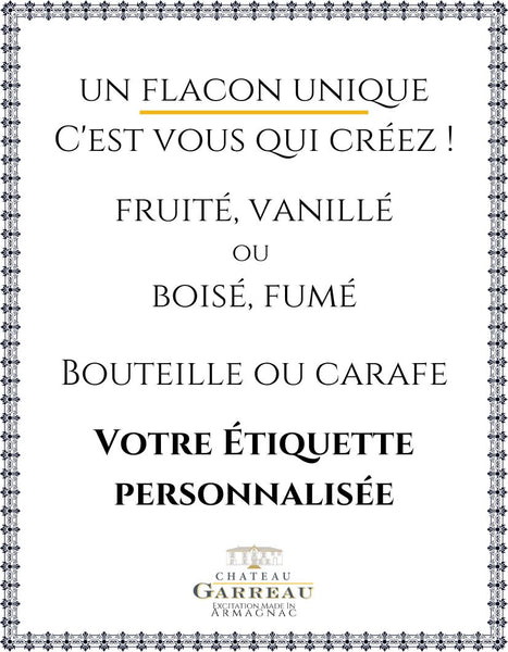 50 exemplaires seulement seront réalisés, étiquette personnalisée offerte ainsi qu'une remise de 10 % jusqu'à la fête des Pères. Chaque flacon sera donc unique !